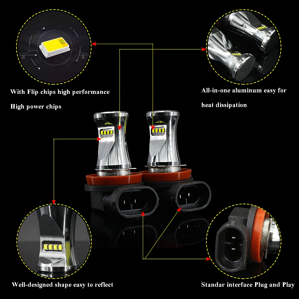 Ideal 2pcs/set LED H11 H8 H9 Fog lights H7 bulb 9005 HB3 car lamp H10 PY20d 9006 HB4 Running lights H16 P